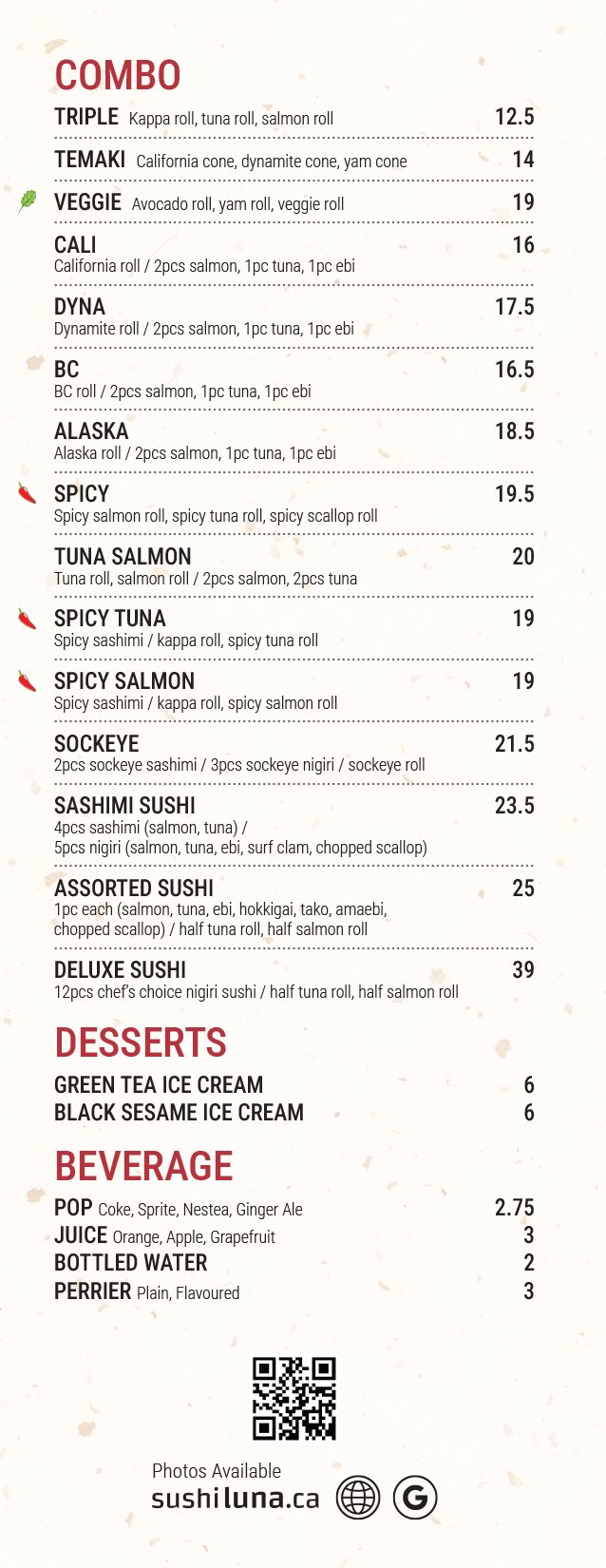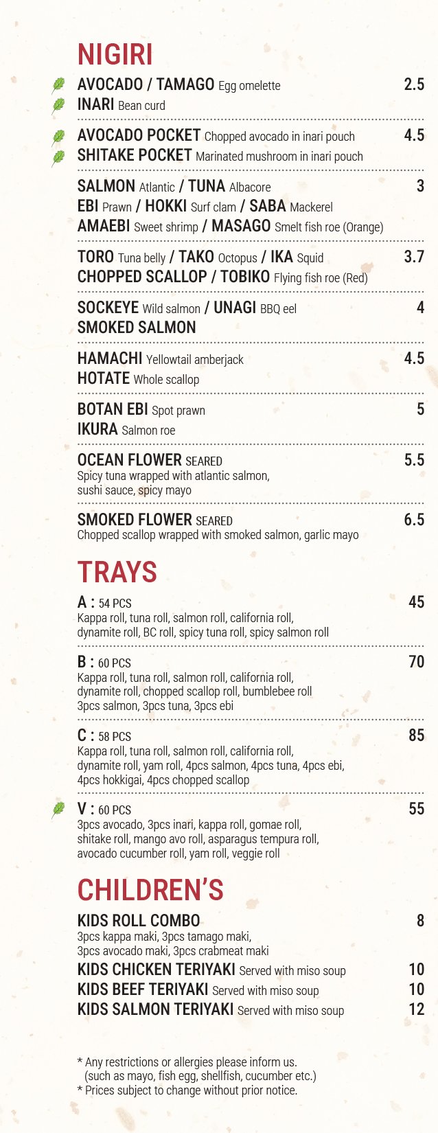 Sunday - Thursday