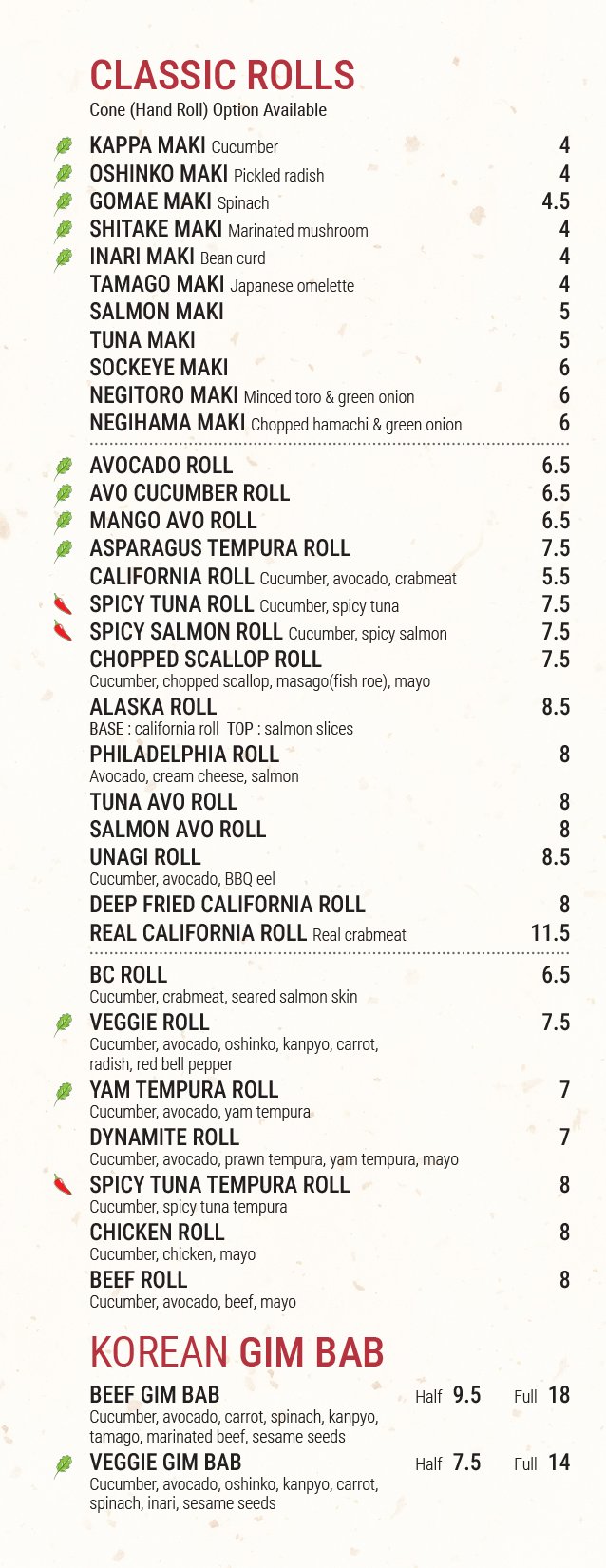 Sunday - Thursday